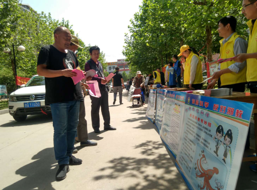 5月23日上午,九曲街道九曲花园小区,2018年河东区社会科学普及周集中宣传活动正热烈举行。河东区防范办准备充分、现场活跃,反邪教宣传效果明显。